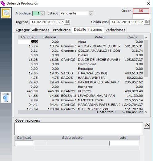 Programación de solicitudes de producción contra pedido o abastecimiento.